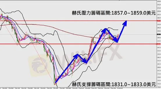 本日上方壓力籌碼區間:1857.0~1859.0美元/盎司