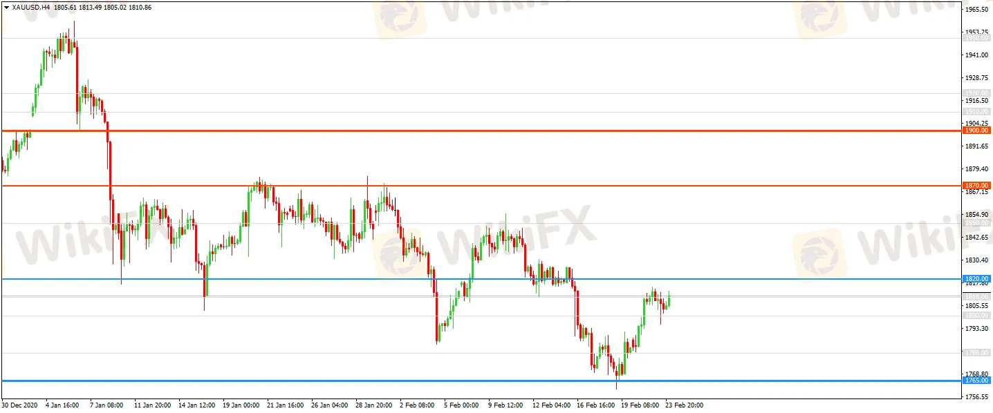 摘要:週三(2月24日),現貨黃金小幅上揚至1813美元/盎司附近,現報1810.66美元/盎司。美元指數最新報90.02。