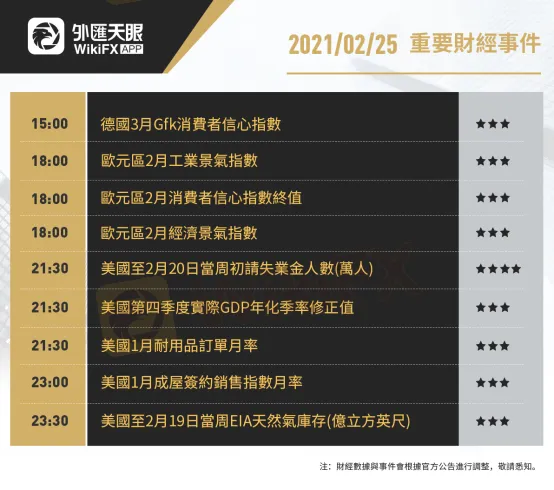 以下為2月25日(周四)重要財經事件,更多資訊,請關注外匯天眼APP或官方網站!