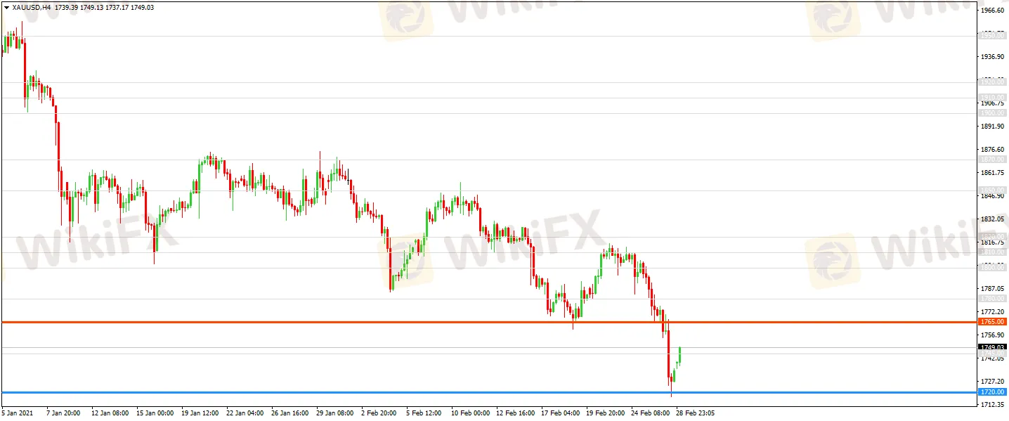 金價上周呈現大跌走勢,今日開啟反彈模式,但依舊處於1765關鍵水準下方。從技術面上4小時級別圖表上看,整體呈現破位態勢,不過日內有整理需求。