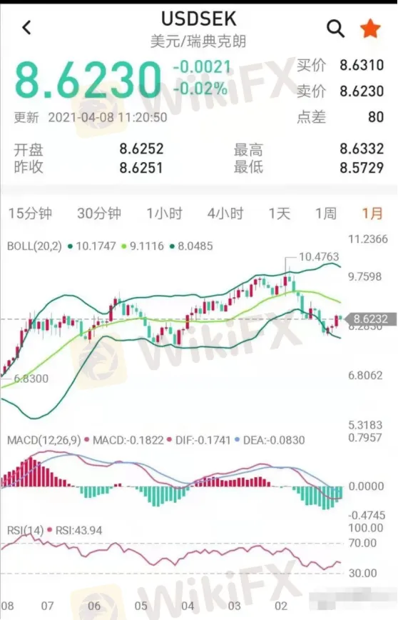 圖為 USD/SEK 月曲線