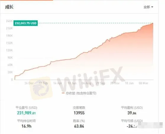收益上升穩定,勝利大於50%,而且平均盈利232美元,是平均虧損24美元的9.6倍,太牛了啊。