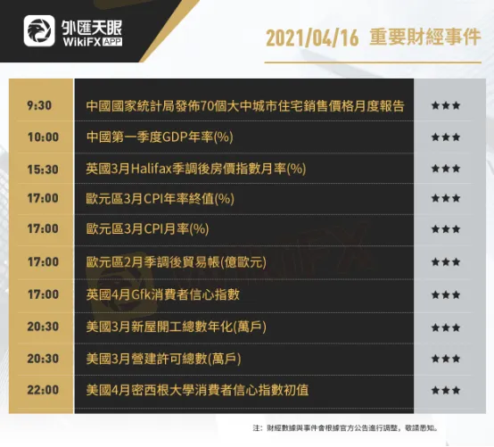 以下為4月16日(周五)重要財經事件,更多資訊,請關注外匯天眼APP或官方網站!