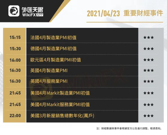 以下為4月23日(周五)重要財經事件,更多資訊,請關注外匯天眼APP或官方網站!