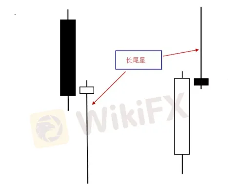 從某種程度上來說,長尾星的判斷是一個比較主觀的話題。但通常來說,它是一個影線部分顯著長於實體部分(即開盤價和收盤價之間的部分)的K線。而長尾星的重要之處就在於他們的影線部分,它往往意味著價格對某個價位或是區域的測試失敗,隨後可能會出現不同程度的反轉走勢。