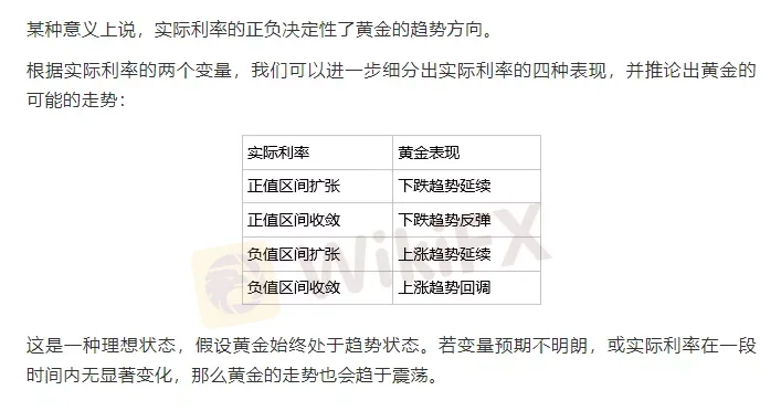 事實上,儘管實際利率與黃金之間存在四種關係,但對我們交易最有價值的只有2種。一是實際利率在負值區間擴張,二是實際利率在正值區間擴張。這兩種情況將推動黃金走出趨勢行情。