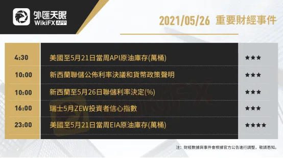 以下為5月26日(周三)重要財經事件,更多資訊,請關注外匯天眼APP或官方網站!