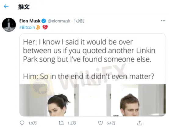 周五亞盤,特斯拉CEO埃隆·馬斯克發佈比特幣相關推特,並在後面附上“心碎”的表情。