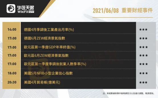 以下為6月8日(周二)重要財經事件,更多資訊,請關注外匯天眼APP或官方網站!