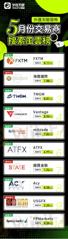 外匯交易商排行:外匯天眼發佈5月份訪問排行榜附名單