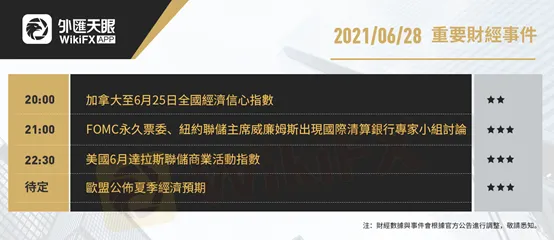 以下為6月28日(周一)重要財經事件,更多資訊,請關注外匯天眼APP或官方網站!