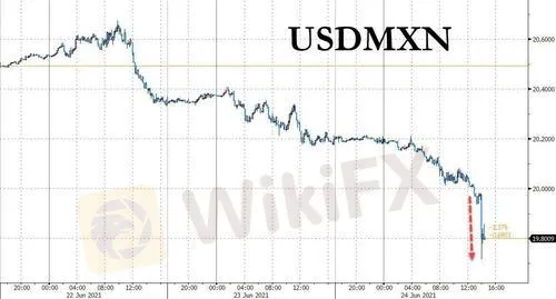 6月24日周四,墨西哥央行出人意料地將基準利率上調了25個百分點至4.25%,以應對政策制定者此前稱之為“暫時性”的通脹飆升。