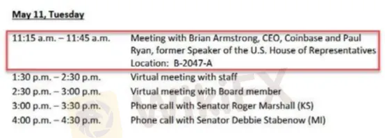 美聯儲會議紀錄顯示,美聯儲主席鮑威爾於5月份會見了加密貨幣交易所Coinbase的首席執行官布萊恩·阿姆斯特朗。