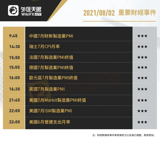 以下為8月2日(周一)重要財經事件,更多資訊,請關注外匯天眼APP或官方網站!