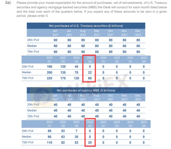 圖1:2021年6月美聯儲一級交易商調查報告顯示交易商預計Taper至2022年四季度終結