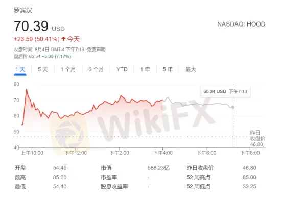 據悉,Robinhood股價週三盤中多次觸發熔斷,一度觸及85美元,創上市以來新高,漲幅一度高達81%。此外,該股週三交易量逾1.046億股,超過了IPO首日的1.025億。