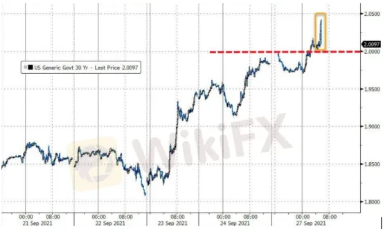 摘要:30年期美債收益率週一晚間一度飆升至近2.05%水準,10年期美債收益率則一度升穿1.50%,為近三個月來首次。
