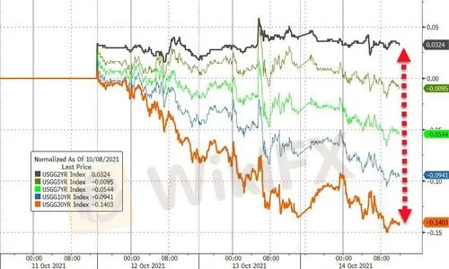 美債收益率週四紛紛自高位回落,因當天公佈的美國9月PPI數據漲幅略遜預期,暫時緩和了投資者對通脹前景的擔憂。不過,隨著越來越多的華爾街大佬開始談及通脹上行的風險,同時美聯儲官員持續為縮減QE造勢,債市的整體情緒依然謹慎。