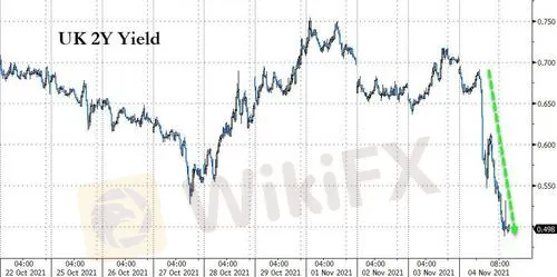 對利率預期最敏感的2年期英債收益率當天一度急跌逾20個基點,盤中觸及四周低點0.475%。這是自2016年6月24日英國脫歐公投後的第二天以來最大的單日跌幅,5年期英債收益率也驟降19個基點,至0.65%。