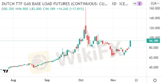 該消息對歐洲天然氣市場造成不小影響。在荷蘭的天然氣交易市場上,12月份天然氣期貨價格上漲近18%,英國天然氣期貨上漲近17%,美國天然氣期貨上漲近3.19%。