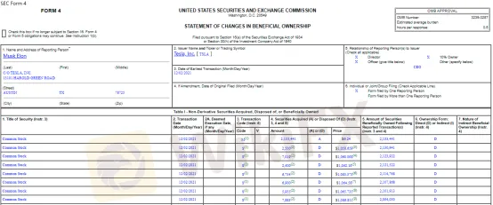 馬斯克最近幾周已經進行了一系列拋售,他上一次出售特斯拉股票是在11月23日。自11月8日以來,馬斯克已經行使了1070萬份股票期權,並累計出售約1010萬股特斯拉股票,價值約109億美元。