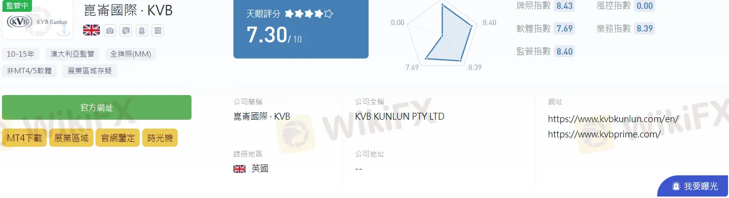 KVB昆侖國際環球資本集團為KVB昆侖國際集團旗下的全資子公司。2001年,KVB Global昆侖國際在新西蘭的還奧克蘭正式成立,2002年澳大利亞悉尼公司正式成立,2005年香港、墨爾本公式全面運營,2007年,加拿大多倫多公司全面運營。2012年,KVB Global昆侖國際與中信銀行合作,共同拓展離岸金融及高端的私人銀行服務。 2016年,臺北公司全面運營,上線全球電子外匯eFX交易平臺,並推出了大洋洲商業地產信貸業務,開始全力拓展新西蘭和澳大利亞的基金產品。KVB昆侖國際環球資本集團目前持有澳大利亞ASIC的全牌照(牌照號:334293)。