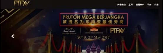 PTFX在官網上大肆宣傳自己與普頓集團的關係