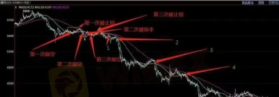 但是,如果你在圖中的第一至第三次做空的,按照我5分鐘的週期,我是連續被洗出來5次。如果我換成15分鐘的週期去拿(如下圖所示),我就能穩穩地拿住。所以,週期也是你能不能拿住單子,不被止損洗下來的關鍵。