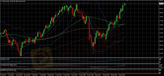 原油期貨價格上周五(1/14) 上漲,令原油連續第四週收高,紐約期油升穿每桶84.12美元,升30美仙,並曾經觸及逾2個月高位。倫敦布蘭特3月期油收市升42美仙,報每桶86.48美元。布蘭特期油高見每桶86.71美元,距離2014年10月的高位,只差4美仙。
