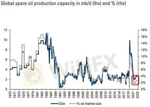 首先,無論是從戰術層面還是戰略層面來看,油價都存在明顯的上行趨勢。高盛表示,當前地緣政治局勢所帶來的風險溢價,幾乎是在幾十年來最緊張的庫存水準、低閒置產能和彈性更低的葉岩油氣行業的背景下出現的。