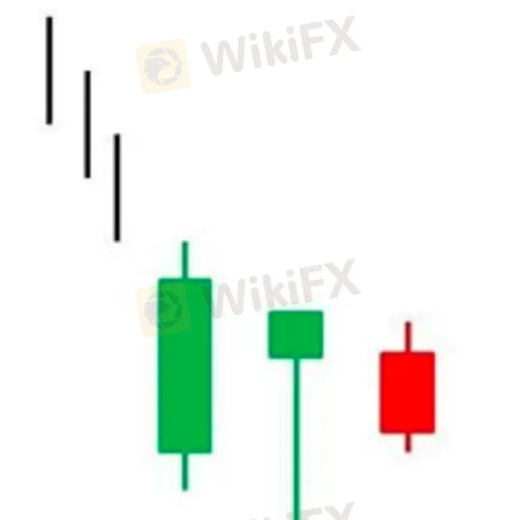 市場處於下降趨勢當中,某天出現了一根大陰線;第二天市場高開,但是空方力量依然強大,市場下行並創出新低,隨後多方開始反攻,空方開始出現動搖,並與當天次高點收盤;市場還處於猶豫不決當中,第三天市場低開,盤中多方佔據優勢,最後以小陽報收。如果第四天,價格繼續上揚,則反轉可能即將形成。