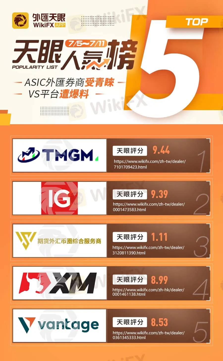 為了回應廣大用戶的期待,本週外匯天眼同樣整理過去一週登上熱搜的5家經紀商,並且發現除了VS是被爆料的黑平台以外,其他4個平台都是擁有澳洲ASIC牌照的正規交易商,其中詳情將在稍後講解說明。