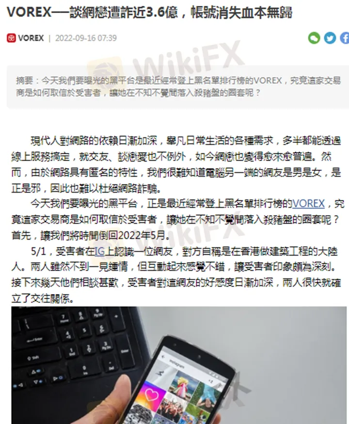 不久前,外匯天眼發布曝光文「VOREX──談網戀遭詐近3.6億,帳號消失血本無歸」,向所有用戶爆料VOREX這家最近極具爭議的交易商,詳細揭露其詐騙經過與做案手法,呼籲大家不要受騙上當。今天,我們將深入追蹤、調查該平台的最新動向。