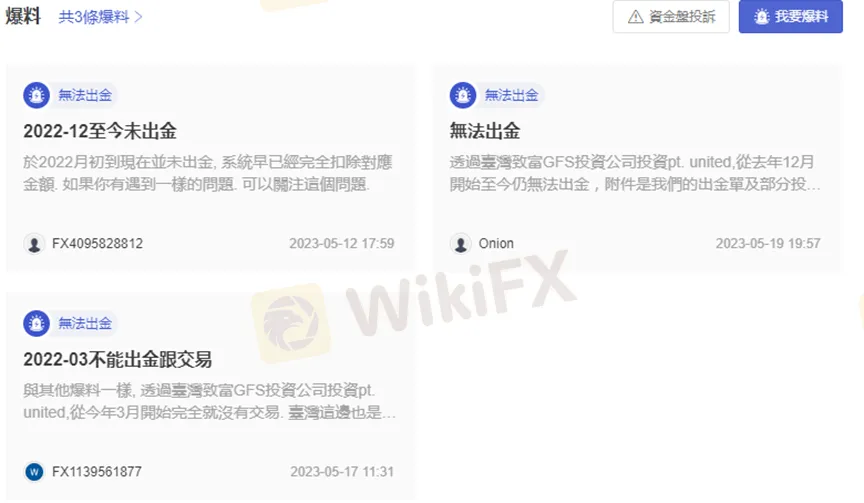 據了解,這些受害者有個共同點,都是透過台灣致富GFS投資公司入金到這個平台,其中一位受害者已經投資好幾年,但因為2022年因為看到百麗與澳豐無法出金的消息,因此想先贖回一部分,結果遲遲沒收到出金。對此,致富GFS的回應是該平台正在接受金融檢察與外匯管制,並且在3月時傳了來自United Asia Futures暫停交易的公告。