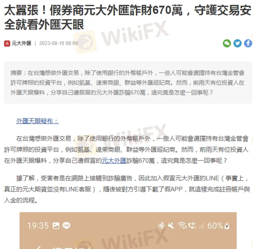 上週外匯天眼發布「太囂張!假券商元大外匯詐財670萬,守護交易安全就看外匯天眼」這篇即時報導,提醒所有用戶小心最近冒出來的詐騙平台,今天我們將詳細講述這家假券商的犯罪經過與手法。