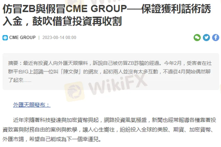 各位投資人請注意,外匯天眼在8月中旬時曾發文向大家示警假冒的CME GROUP,分享一位用戶投資獲利後想要出金,客服卻宣稱必須付錢通過高級認證才能提領,具有相當高的詐騙疑慮。沒想到過沒多久,又有受害者控訴自己被另一個假冒CME GROUP詐騙。