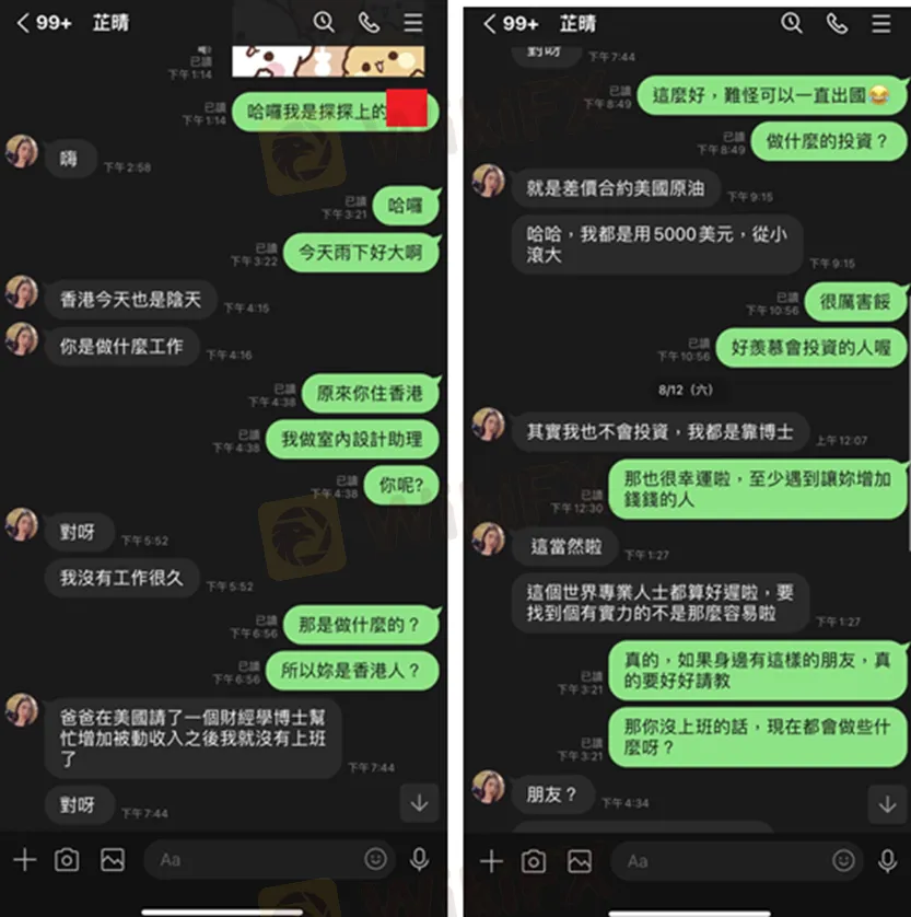 一開始,受害者是透過某個交友APP認識一位暱稱「芷晴」的香港網友,兩人互動起來感覺還不錯,因此互加為LINE好友,希望有更進一步的發展。對方在聊天中經常提到自己因為一位博士的幫助,目前有很不錯的被動收入。