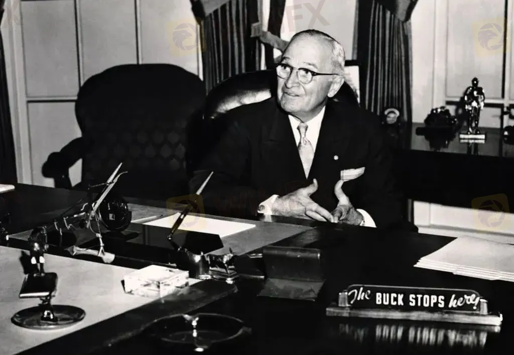 美國前總統杜魯門辦公室裡寫著這樣一句話:The buck stops here,意思是「責任由我一人承擔」。再後來,雖然銀幣代替了獵刀做發牌的工具,但習慣上還是稱為buck,由此buck也就有了「錢幣」的含義,逐漸衍化成了「美元」。