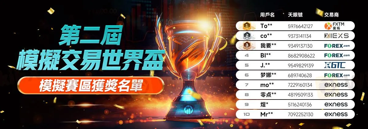 本次大賽中冠名贊助商IEXS表現格外搶眼,旗下參賽者在模擬賽區自開賽以來一騎絕塵,雖然最終未能成功登頂,但本次在投票階段IEXS共收穫11余萬次參賽者投票支持,也是充分證明了參賽者對其的肯定。在大賽期間由參賽者每日5票選出的6大交易商獎項。
