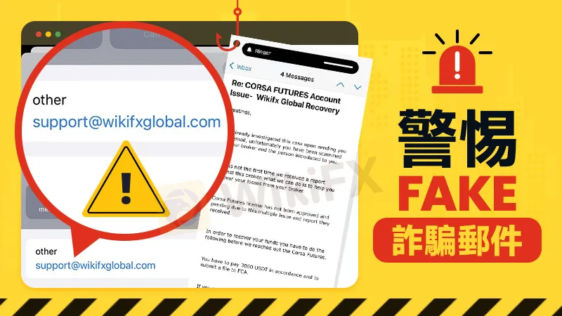 郵件主題:CORSA FUTURES Account Issue - Wikifx Global Recovery(詐騙郵件標題,切勿點擊或回復)