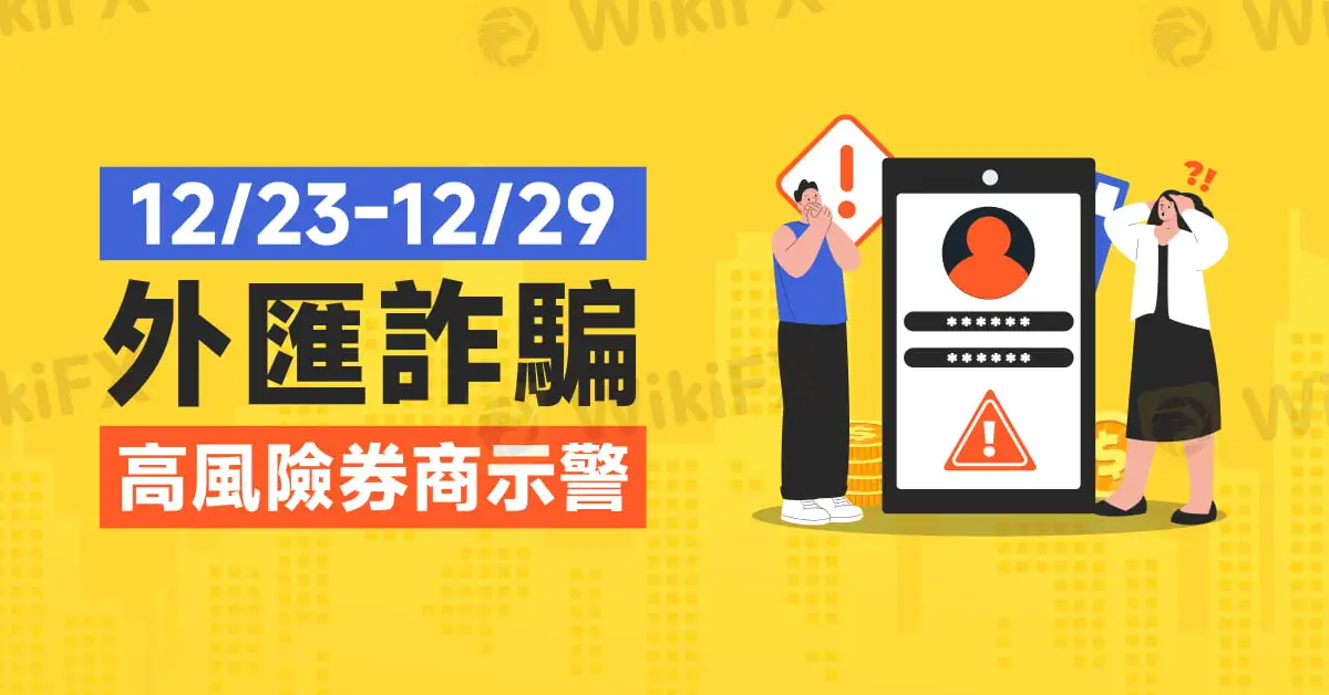 為幫助所有用戶保護本身的資金安全,外匯天眼整理了12/23-12/29對於市場的監測結果,針對最新5家外匯詐騙高風險券商發出示警,請大家務必小心並遠離這些平台,以免蒙受不必要的財務損失!