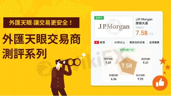 根據外匯天眼官網的查詢結果,J.P. Morgan摩根大通是歷史相當悠久、在全球展業的經紀商,該平台是集團在中國的分支機構,成立於1921年,使用自行研發的交易軟體,持有香港SFC期貨合約交易牌照與馬來西亞LFSA全牌照,並且提供「客訴官方100%介入」服務,對投資人具有一定程度的保障,天眼評分為7.58。