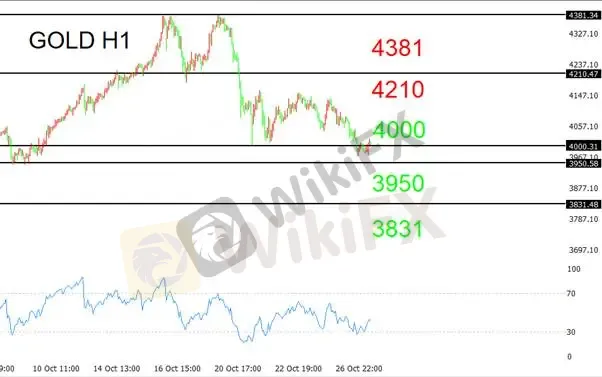 週一(10月27日),金價因中美貿易緊張局勢緩和、市場避險情緒降溫而遭遇大幅拋售,一度跌破$4000美元的心理關口,最低觸及$3971.38美元。週二(10月28日)亞市早盤,價格小幅回升至$4002美元附近,顯示多空雙方在$4000美元整數關口附近正展開激烈爭奪。