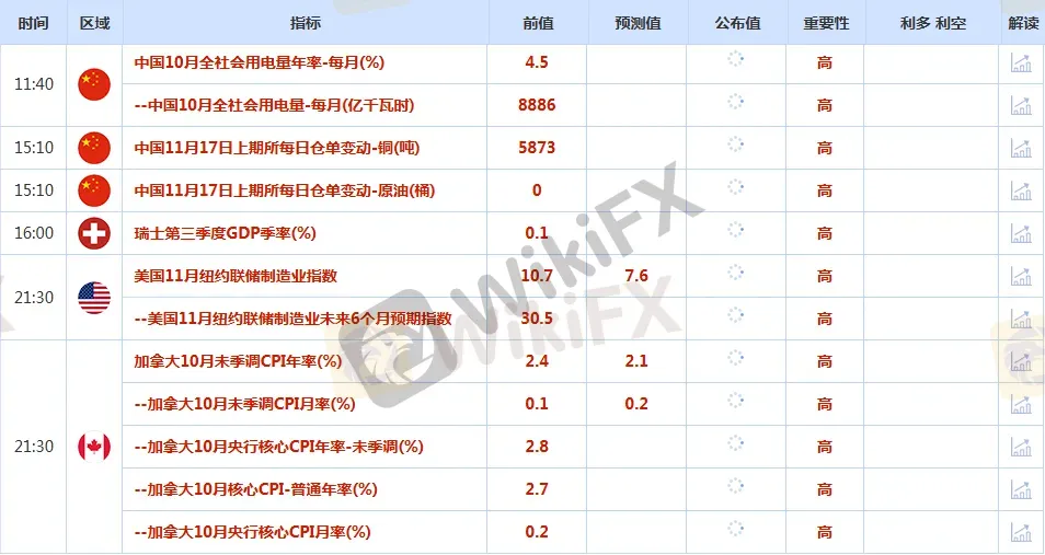 在主要貨幣對中,英鎊表現尤其疲軟。兌美元和歐元均大幅下跌,原因是媒體報道稱英國政府已放棄提高所得稅稅率的計劃,這一政策急轉彎在預算案公布前幾周引發了市場對英國財政政策的不確定性擔憂。此外,瑞郎早些時候因避險需求一度走強,但美元/瑞郎最終收漲。一則貿易消息也受到關注:美國同意根據新的框架协议,將針對瑞士商品的關稅從39%大幅削減至15%。