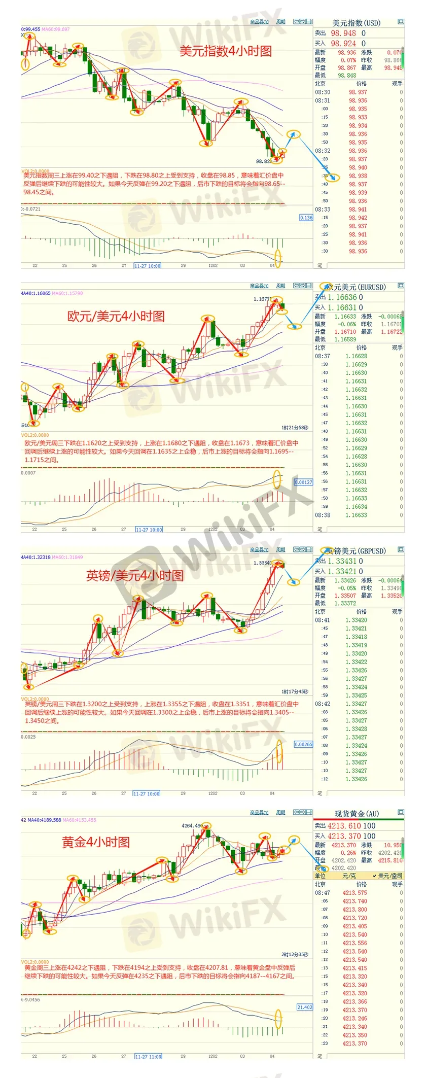 摘要:CWGMarkets市場資訊2025年12月4日(週四):匯訊摘要:週三,美元指數延續跌勢,在ADP就業報告顯示美國11月就業崗位意外下降後,美元擴大跌幅,最終收跌0.45%,報98.88;基準的10年期美債收益率最終收報4.0670%,對美聯儲政策利率敏感的2年期美債收益率收報3.4980%。週四(12月4日)亞市早盤,現貨黃金窄幅震盪,目前交投於4205美元/盎司附近。週三國際金市呈現出持穩態