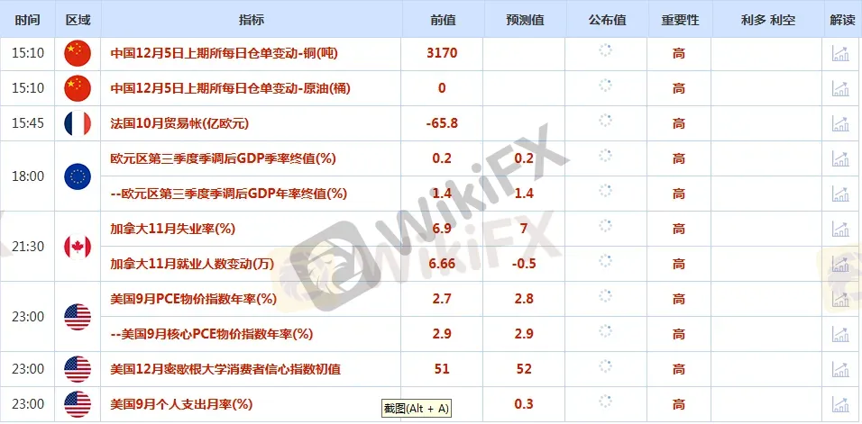 美元指數上漲0.1%,報99.02,初步止住九連跌。 市場預計美聯儲下周降息25個基點的概率接近90%。 儘管上周美國初請失業金數據強勁,但並未改變市場對降息的堅定預期。 此外,關於白宮經濟顧問哈西特可能接任美聯儲主席的猜測仍在持續,市場認為其政策立場可能偏鴿,這一因素也令美元承壓。日元兌美元上漲0.2%,報155.015日元,接近11月17日以來的最强水准。 推動力主要來自市場對日本央行可能在12月會議上加息的預期。