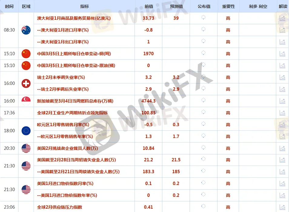 摘要:CWG Markets市場資訊2026年3月5日(週四):滙訊摘要:週三,中東衝突緩和信號打壓避險買盤,美元指數從前一交易日觸及的數月高位回落,最終收跌0.26%,報98.82;基準的10年期美債收益率收報4.103%,對聯儲局政策利率敏感的2年期美債收益率收報3.5600%。黃金價格在週三(3月4日)迎來反彈,現貨黃金報價穩定在5140美元/盎司附近,日內漲幅接近1%,從週二的劇烈回調中快速收復